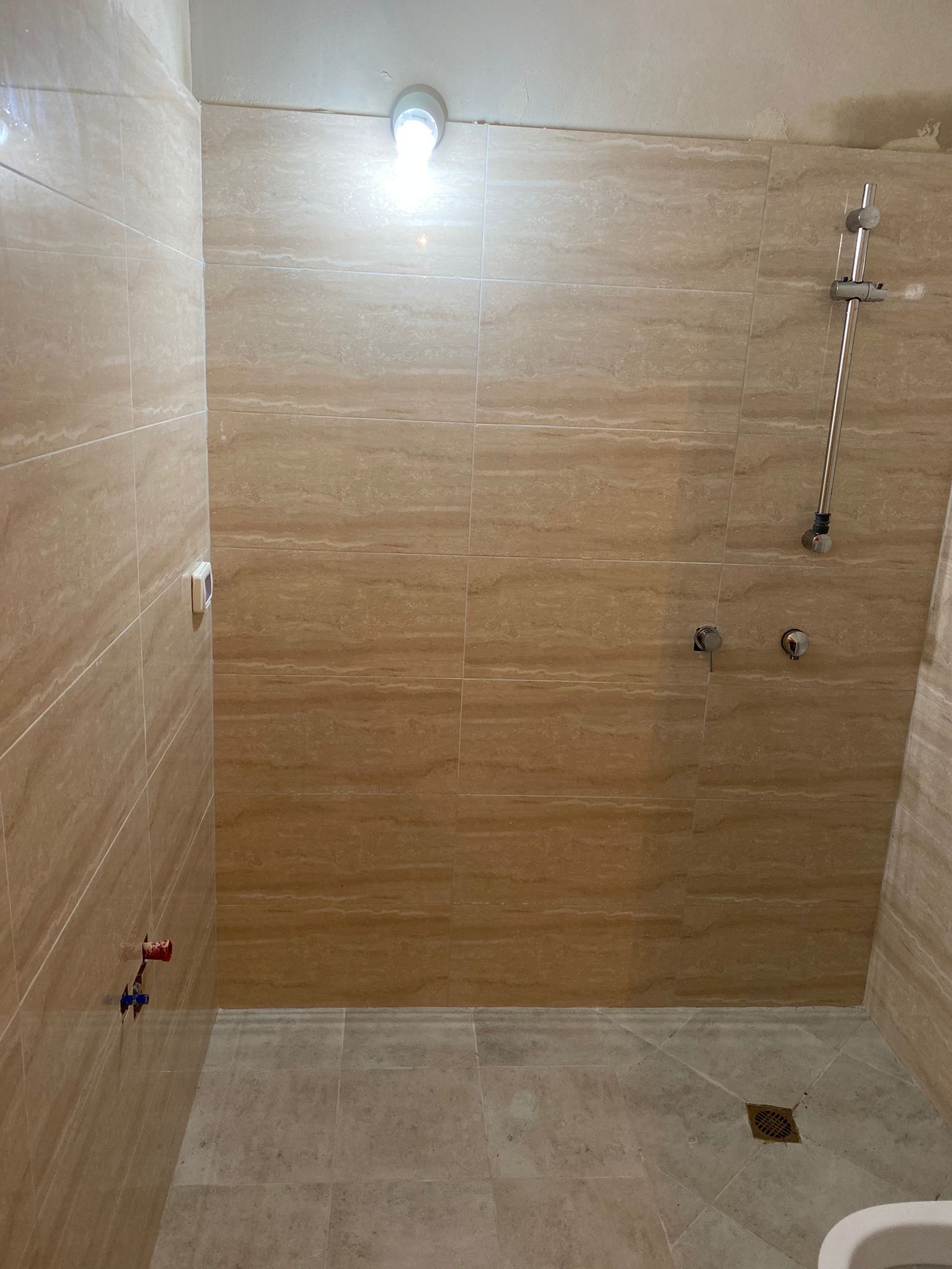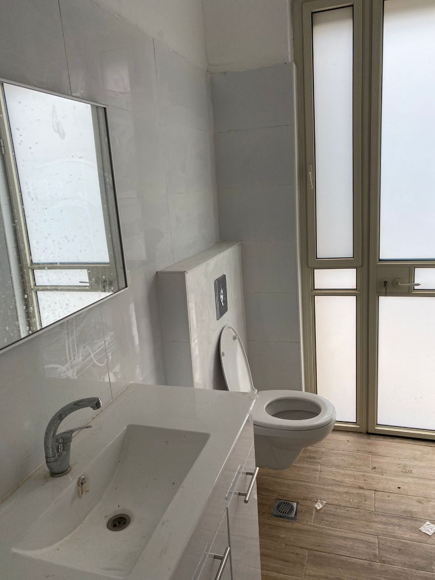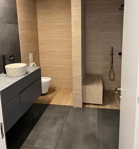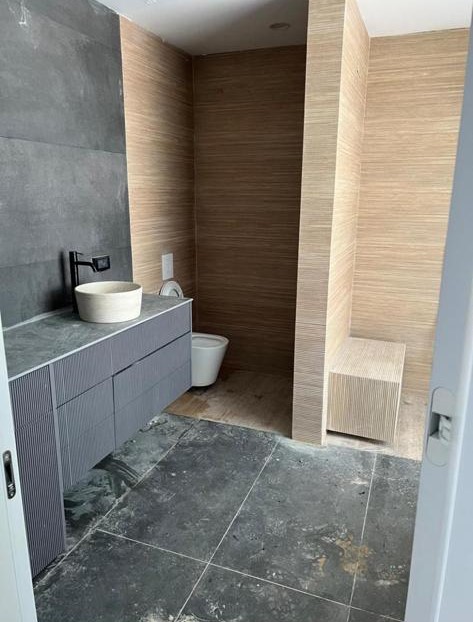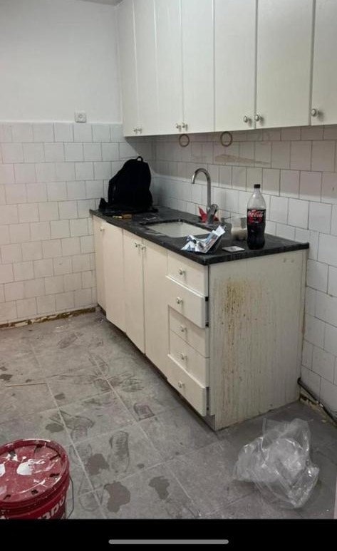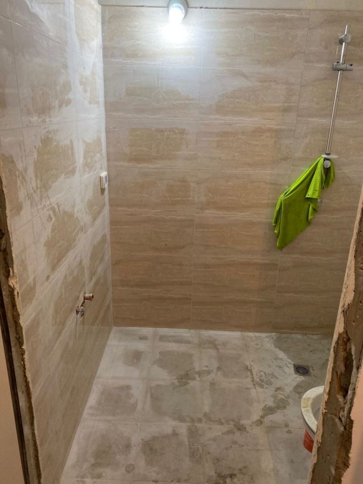 קרצוף עם חומרים מותאמים לחדרים רטובים הכוללים מקלחון/אמבט חיפוי קירות,כיור, כלים סניטריים, וארון אחסון למגבות וכו'.