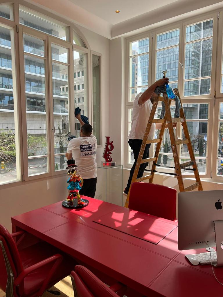 ניקיון והברקת חלון משאריות צבעים ואבק.